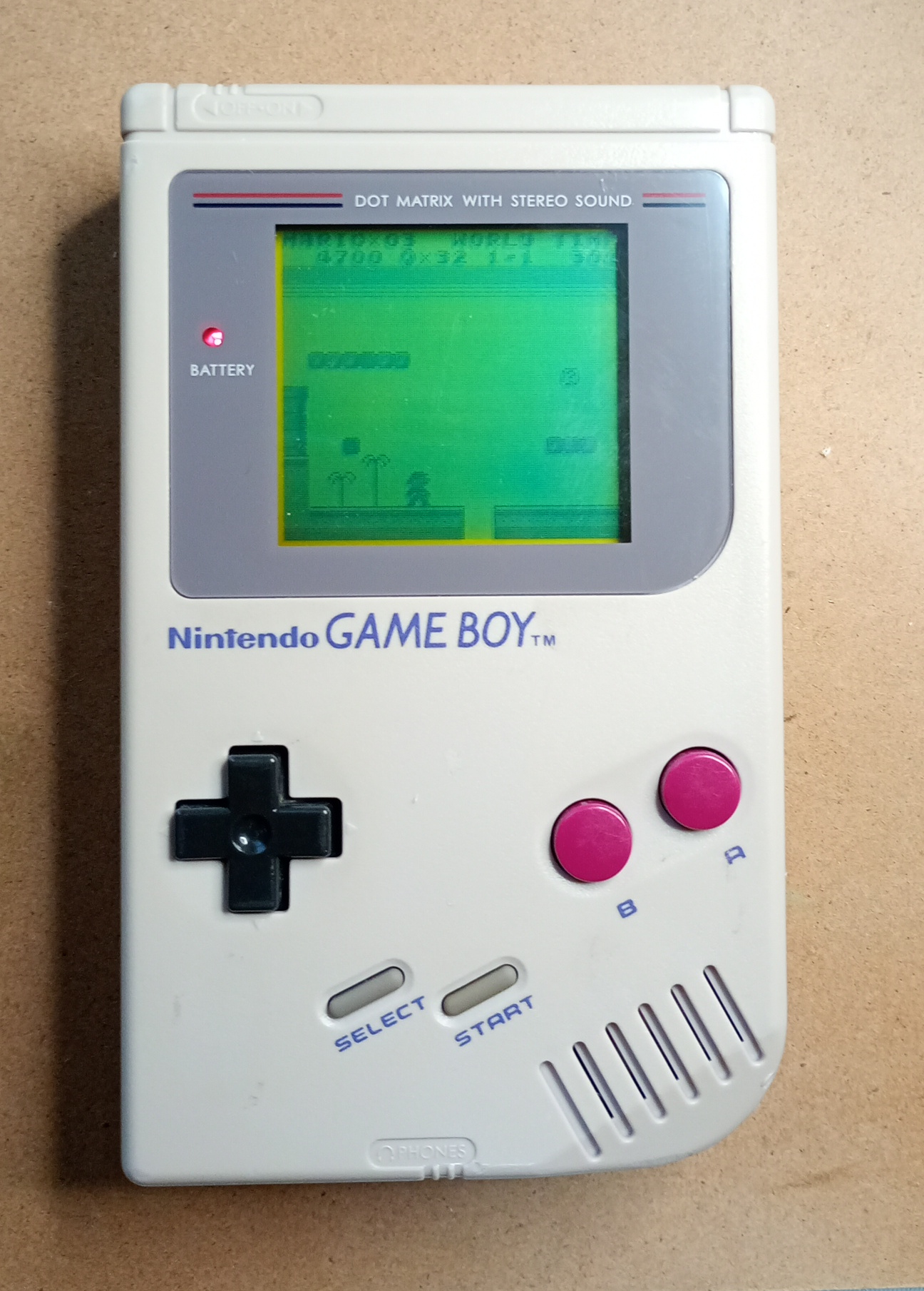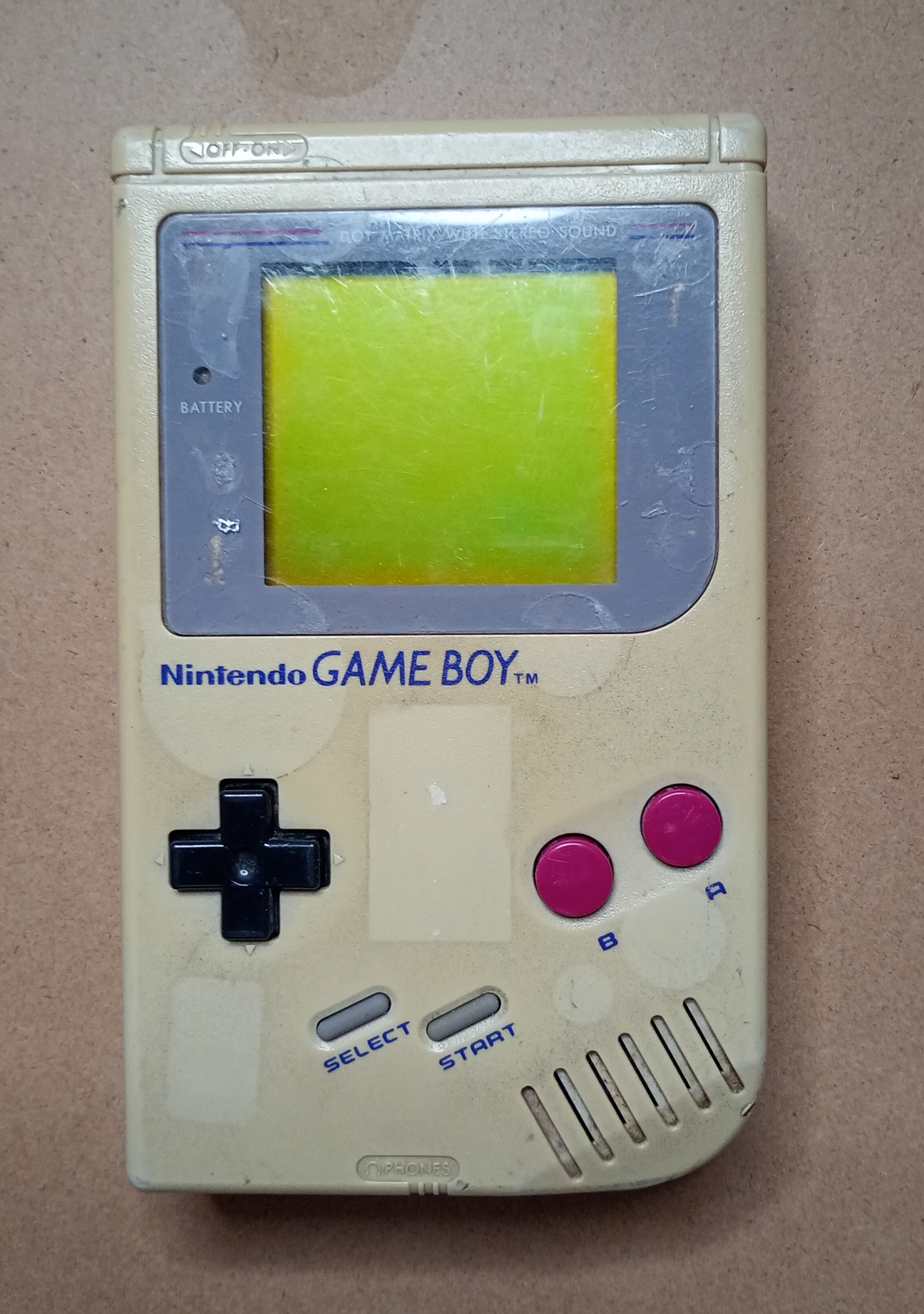 ジャンク品で初代ゲームボーイを入手しました。本体はシールが貼ってあった跡がたくさんあり汚れや黄ばみが酷いです。電池端子はサビついています、電池では電源が入りませんでした。アダプターで電源は入るものの最初は正常に動作しませんでした。