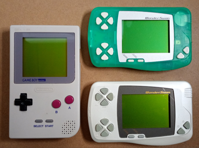 もう一台のグリーンのワンダースワンは当時新品で買って遊んでいたものです。個人的にはこの仕上がりの方が好きですね。